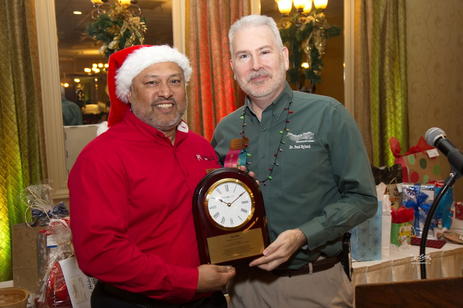 Next, Mo Riad with Mathnasium and our 2023 Chamber Board President presented Dr. Paul Hyland with the President's Gavel and introduced him as our 2024 Chamber Board President. As Dr. Paul Hyland's first duty as president he gave Mo a clock in appreciation for his year of leadership as President of the Board. The clock reads, "In recognition of your outstanding leadership, dedication to serving the members of the Chamber of Commerce & Commitment to promoting a strong and vibrant business community."