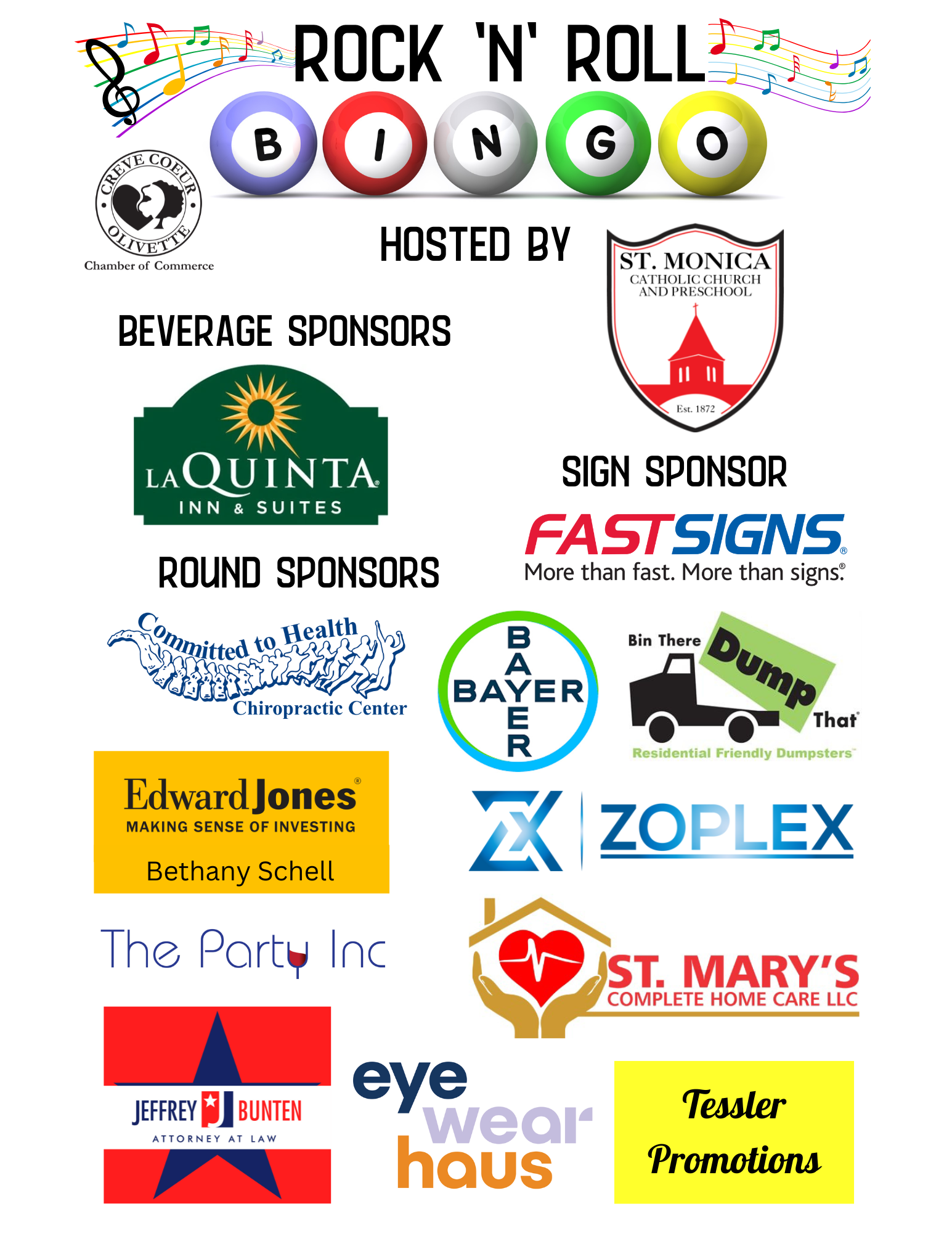 On Friday evening, January 23, 2026, we had our annual Chamber Rock 'N' Roll Bingo. This year, we were hosted by St. Monica Church & Preschool in their Parish Hall. We had an awesome crowd with 17 registered tables. The evening was filled with ten rounds of bingo and two games (1.Heads and Tails, 2. Birthday Bingo). We awarded $50 in gift cards to local restaurants/businesses to every bingo winner. The Party Inc. emceed our event.