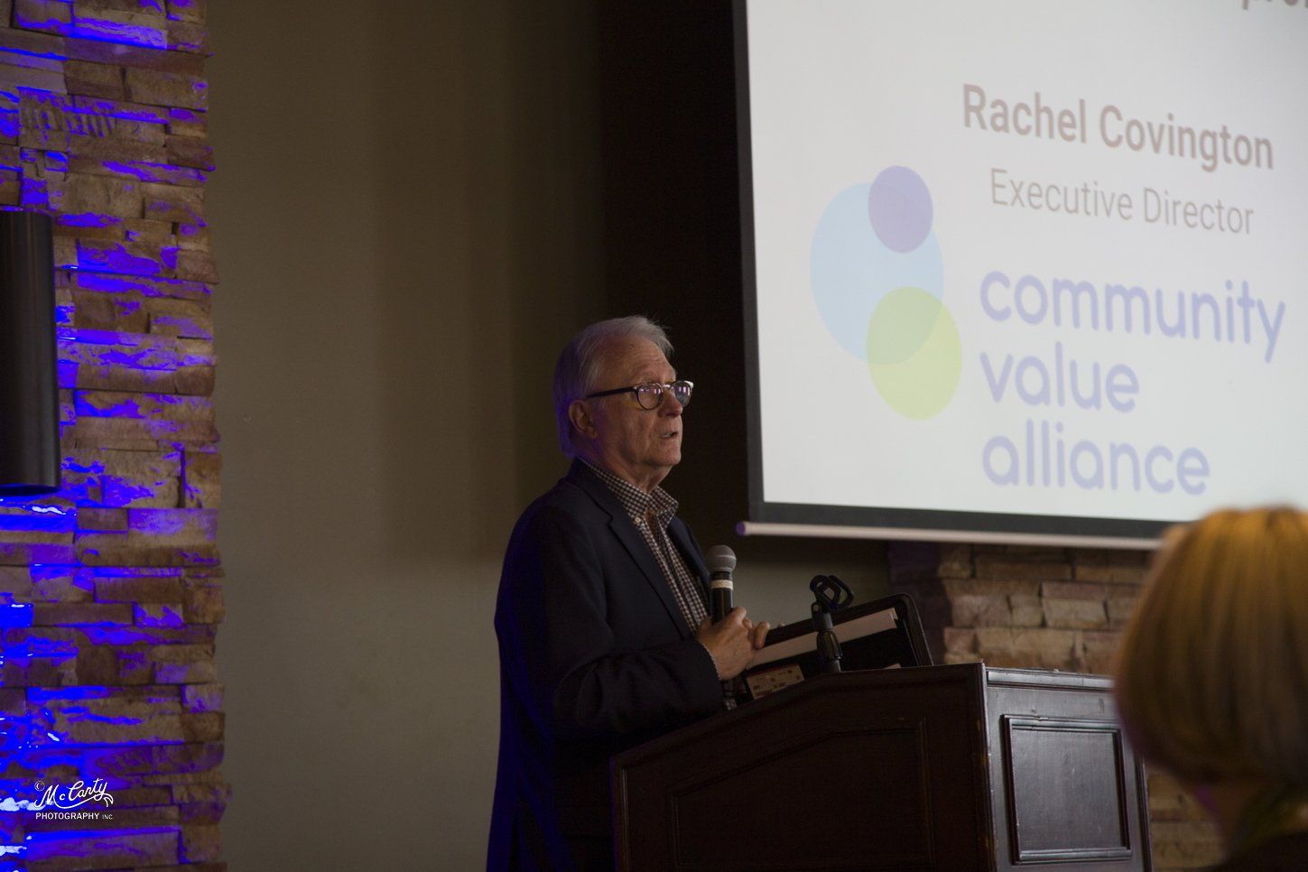 After enjoying our great lunch we welcomed Rachel Covington, Executive Director of Community Value Alliance. She gave an informative and engaging presentation on how Community Value Alliance is supporting and strengthening the nonprofit community. She also shared how local businesses can join in that effort. Here is a link to the slides from our luncheon.