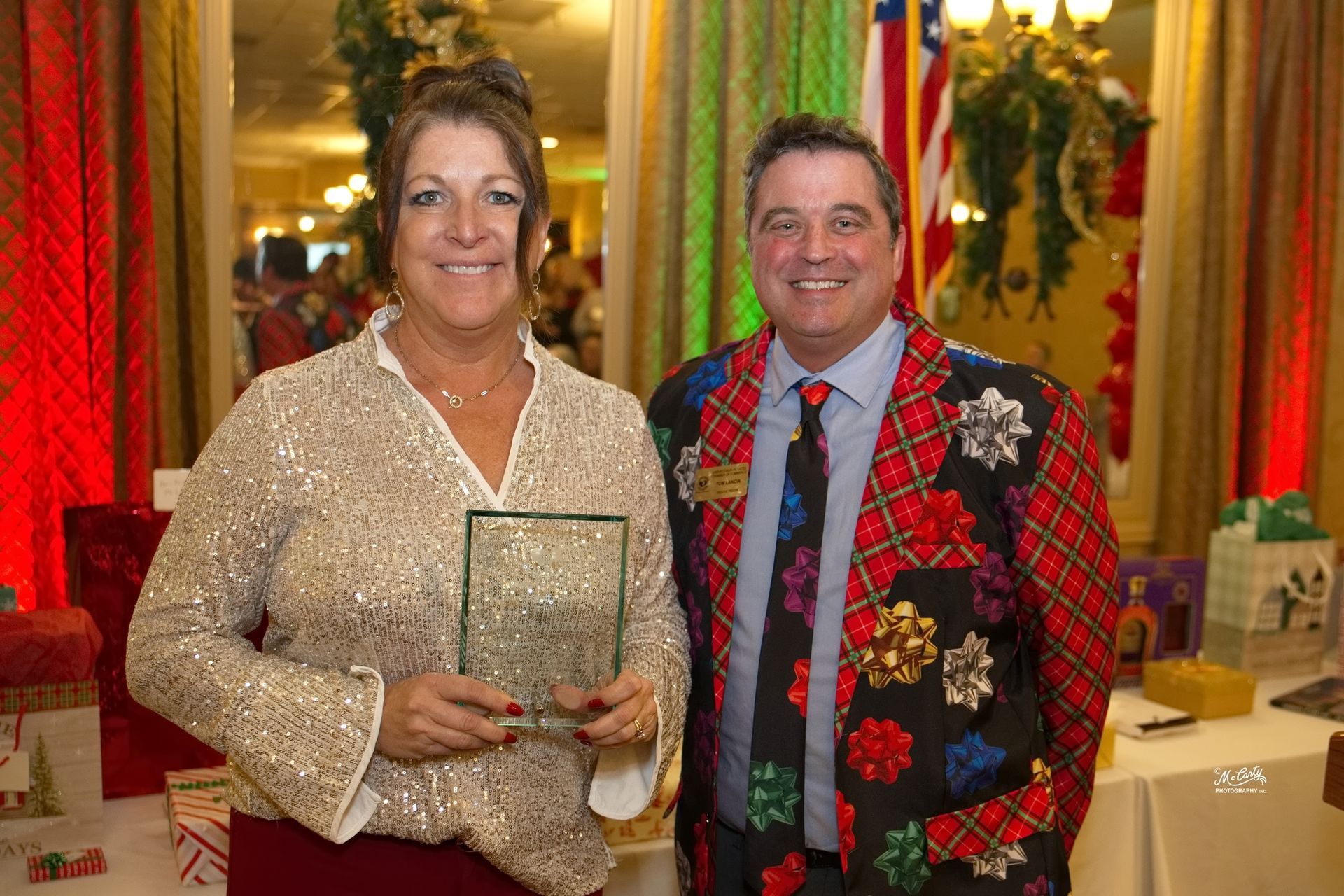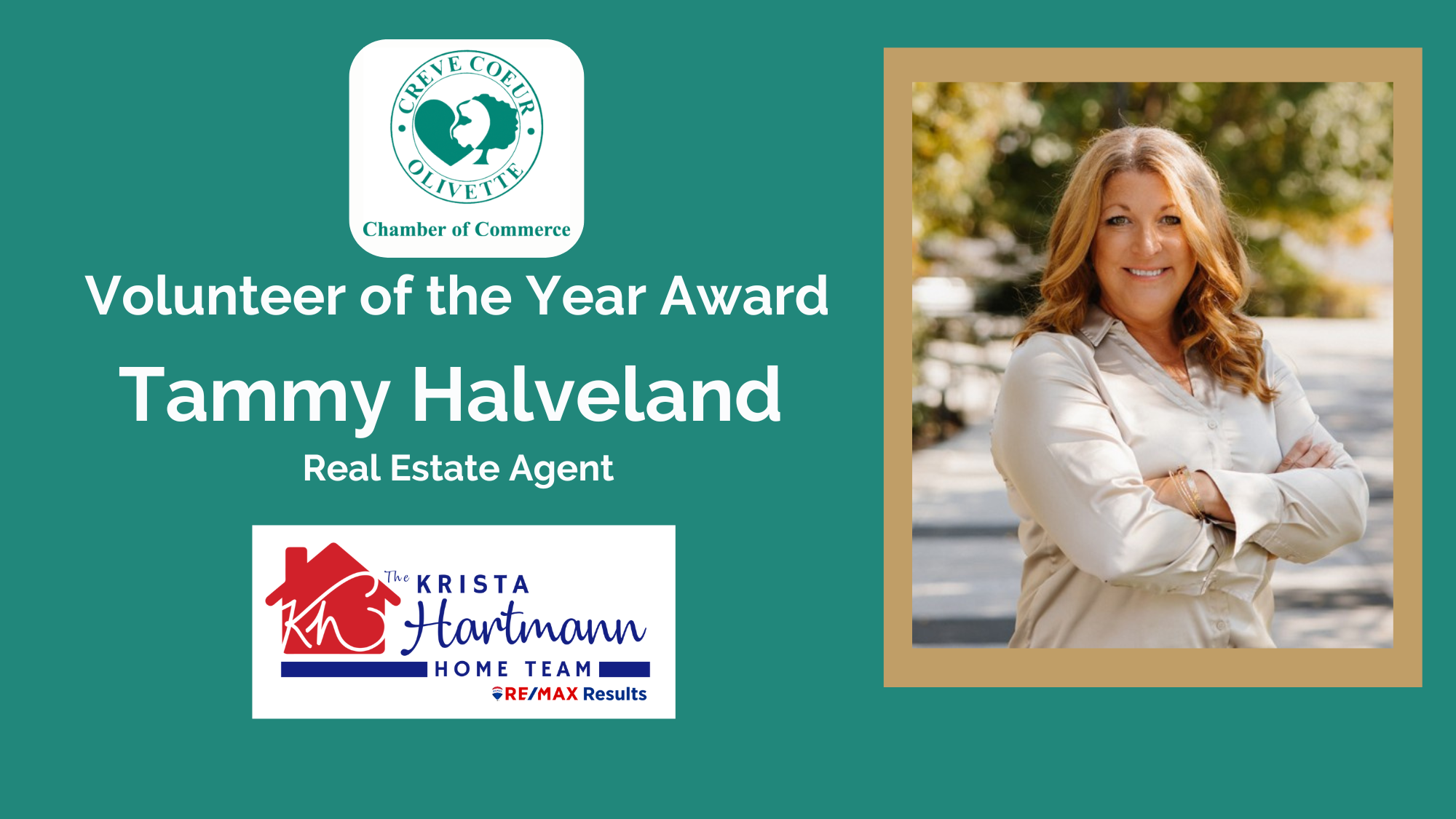 Next, we recognized our 2025 Chamber Volunteer of the Year Award to Tammy Halveland. The award is given to an individual for their involvement in and dedication to the Creve Coeur-Olivette Chamber of Commerce. Tammy is a successful real estate agent with the Krista Hartman Home Team RE/MAX Results. Over the past few years, Tammy has been a great help in leading our "It's Just Networking 2" group and volunteering for Chamber events. She also attends as many meetings as her schedule allows. She also volunteers for the Special Olympics as a head coach of her Falcons team. Tammy has a big heart and is a great representative for welcoming, inviting, and supporting new and regular members.
