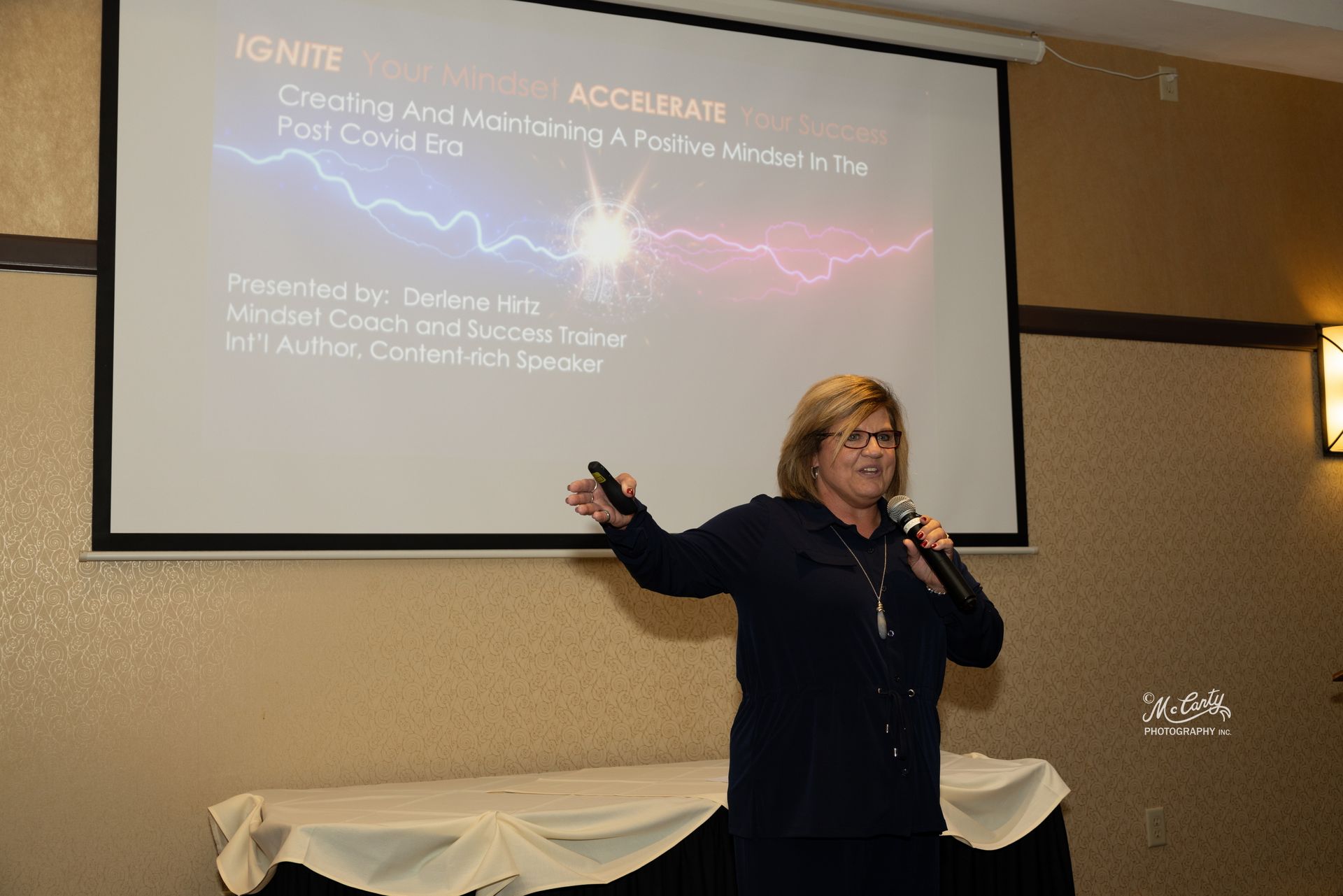After enjoying a tasty lunch by Russo's Catering and some networking at our tables, we introduced our presenter, Derlene Hirtz with You Empowered Services. Derlene gave a great presentation on how to Ignite Your Mindset and Accelerate Your Success. She shared how it is possible to bring Harmony and Success to your personal and professional life by being honest with yourself and developing the right habits and mindset. Click here for a link to her Slides.