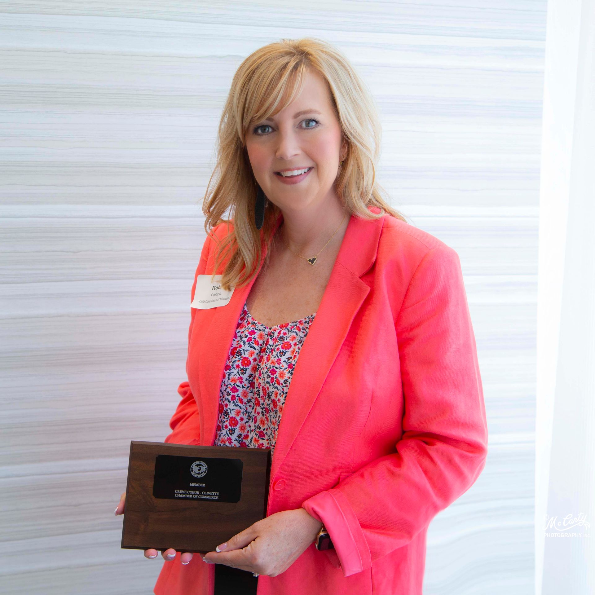 On Thursday, September 18, 2025, we held our Membership Luncheon at the Holiday Inn in Creve Coeur. We began our meeting by saying the Pledge of Allegiance and welcoming our City Officials, members, and guests. Next, we presented our member plaque to Robin Phillips with Child Care Aware of Missouri.